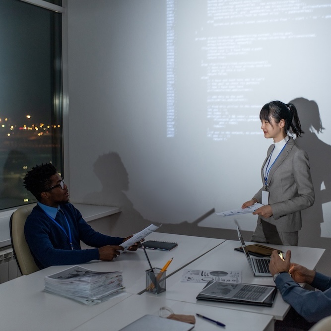 ✔⽇本の企業から案件を受け取って、 ソフトエンジンニアのもとで作業する。 こちらで新人の方は最新のAI技術を接触する機会があって、技術を練習できて、経験が増えて行くことになります。 それから仕事は柔軟性で動けるようになります。